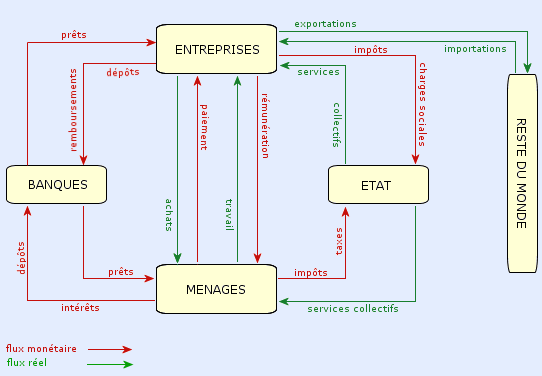 Les échanges générés par l'activité économique se traduisent par des mouvements de biens, de services et de monnaie. Ces échanges sont des flux économiques
