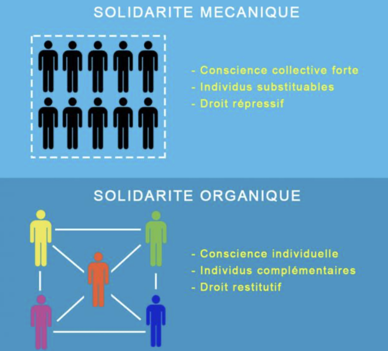Le sociologue Émile Durkheim distingue deux grandes formes de solidarité, c’est-à-dire deux manières dont les individus sont liés entre eux dans une société.