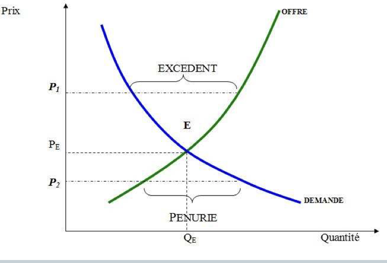 § le prix d’équilibre (P*), pour lequel la quantité demandée = la quantité offerte,