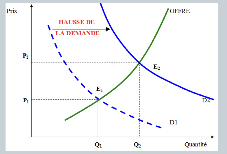 Les deux courbes se croisent en un point d’équilibre (E) :
