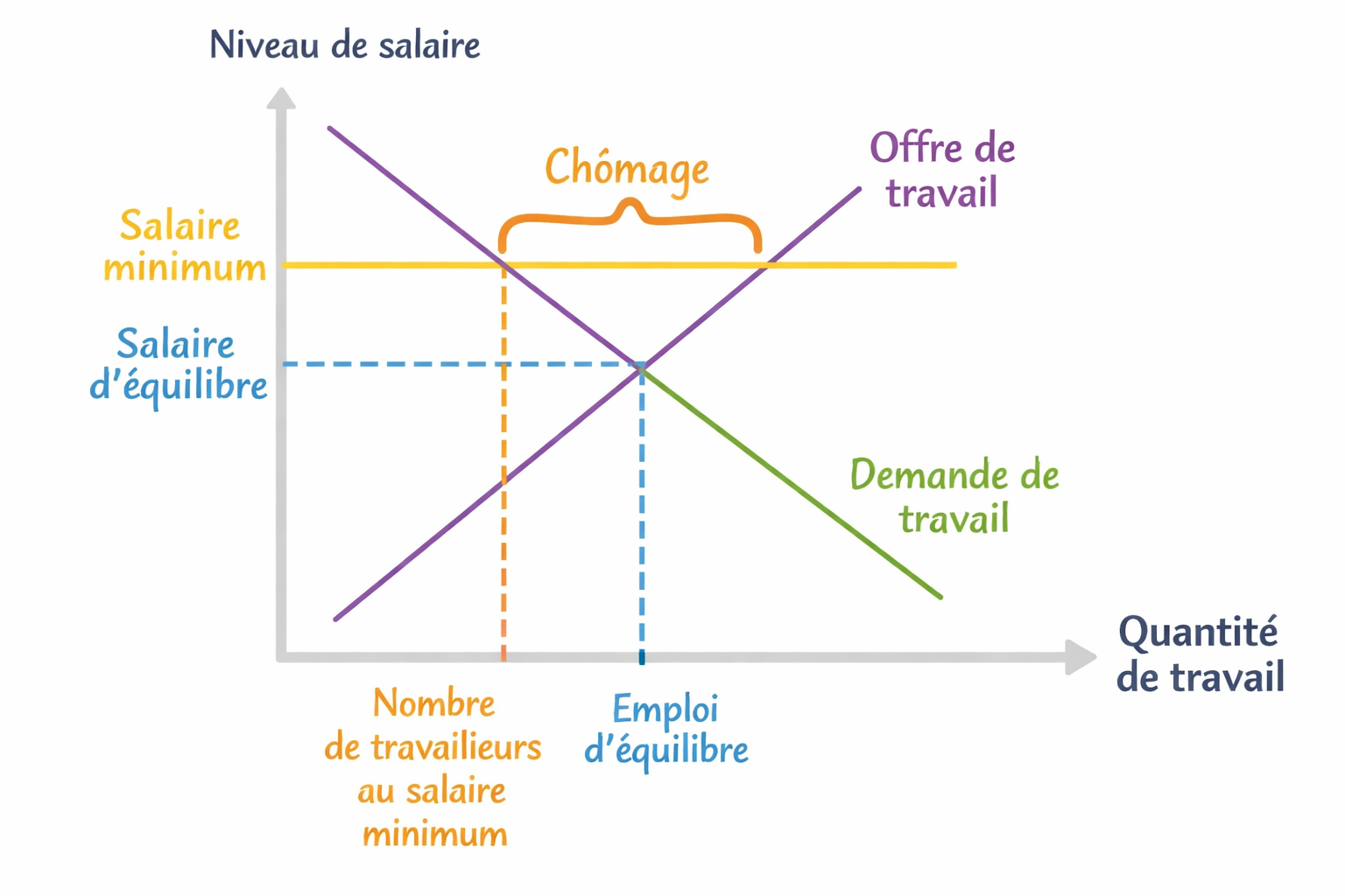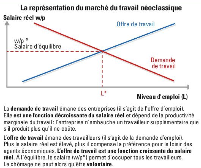 C’est une explication néoclassique du chômage : le chômage est causé par des rigidités sur le marché du travail (salaires minimums, cotisations sociales, règles protectrices).