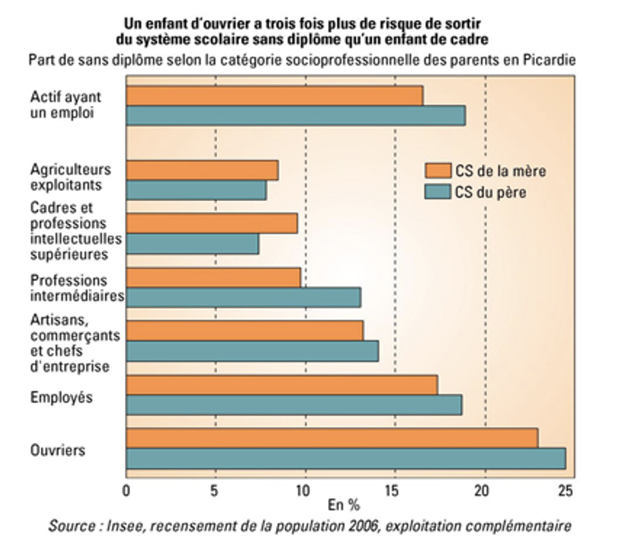 -entre les deux, une fragilisation des professions intermédiaires.