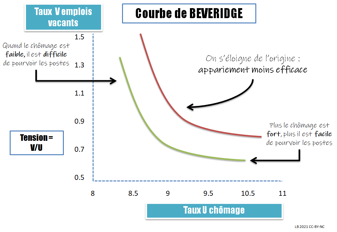 Le défaut d’appariement peut être lié à des problèmes de qualification, de localisation géographique bien sûr, mais de manière plus générale au temps de recherche d’un emploi adapté pour la personne au chômage et, du côté de l’employeur, au temps mis aussi à chercher le travailleur adapté au poste à pourvoir.