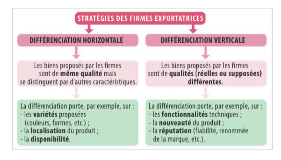 La compétitivité repose largement sur la productivité des firmes, c’est-à-dire leur capacité à produire de la valeur ajoutée efficacement. Toutes les entreprises ne sont pas également productives : seules les plus performantes peuvent supporter les coûts liés à l’exportation (transport, normes, prospection). Ce sont donc les firmes les plus productives qui exportent et permettent à un pays de conquérir de nouveaux marchés.