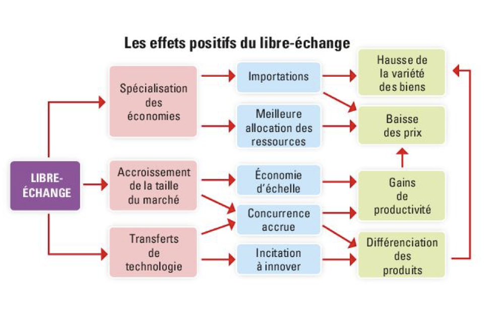 Le libre-échange correspond à l’absence (ou à la réduction) d’entraves aux échanges internationaux. Il génère en moyenne des gains (baisse des prix, plus grand choix, gains de productivité),.