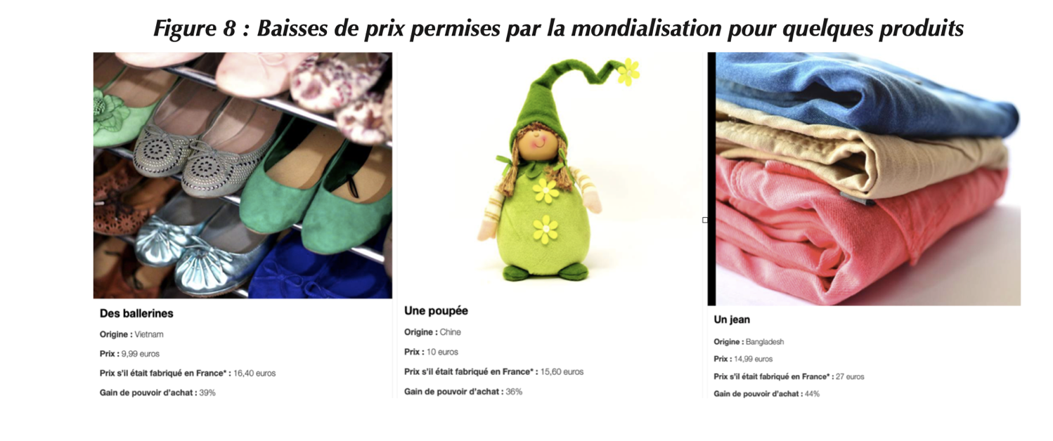 Plusieurs études empiriques confirment l’existence de ces gains en termes de pouvoir d’achat. Par exemple, une étude de la Banque de France estime que les importations de biens finaux en provenance de pays à bas salaires ont permis aux ménages français d’économiser en moyenne environ 1 000 euros par an sur leurs dépenses de consommation entre le milieu des années 1990 et 2014.