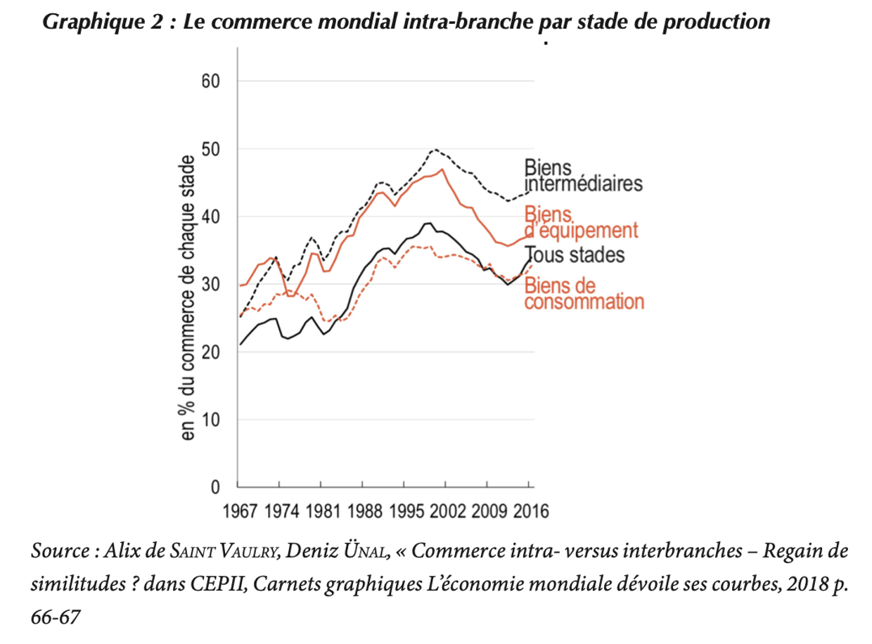 Aujourd’hui, beaucoup de productions sont fragmentées : les entreprises importent des biens intermédiaires(composants) pour produire et exporter.