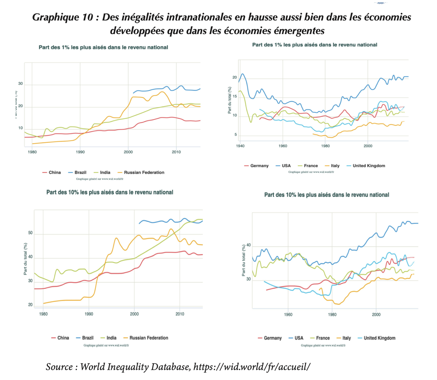 En revanche, la mondialisation contribue à une hausse des inégalités au sein des pays, notamment en raison de la fragmentation des chaînes de valeur, du progrès technique et de la concentration des activités dans les métropoles.